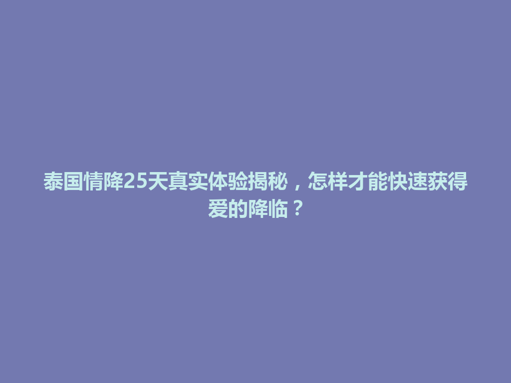 安阳县泰国情降25天真实体验揭秘,怎样才能快速获得爱的降临?
